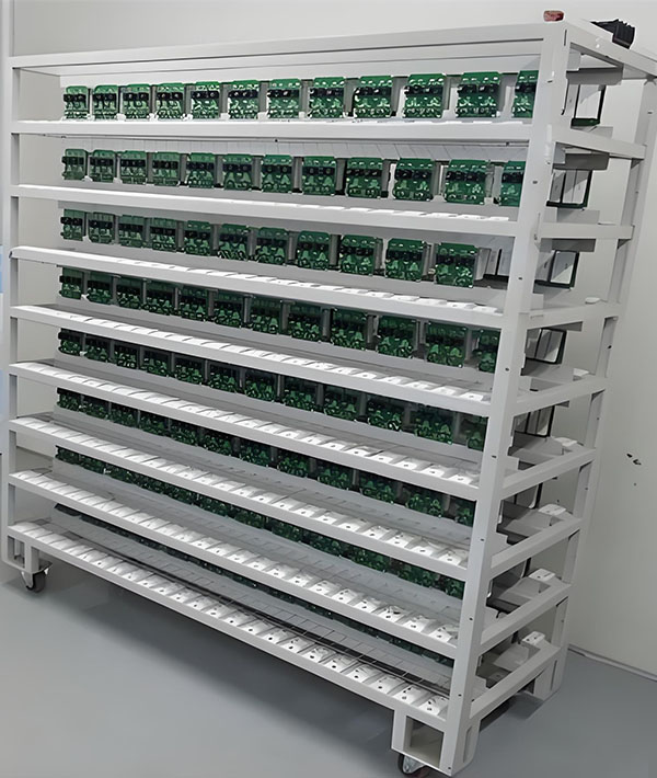 老化架功能:用于对制造业生产出来的产品进行加速老化测试的设备,通过模拟光照、湿热、热风等实际使用环境的强化条件,以缩短测试周期并评估产品性能。