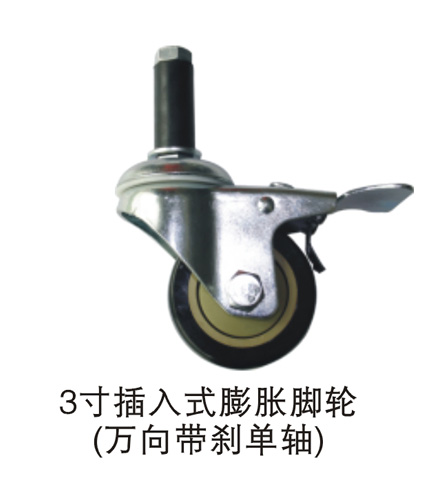 3寸插入式膨胀脚轮(万向带刹单轴)