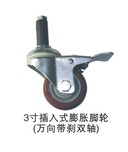 3寸插入式膨胀脚轮(万向带刹双轴)